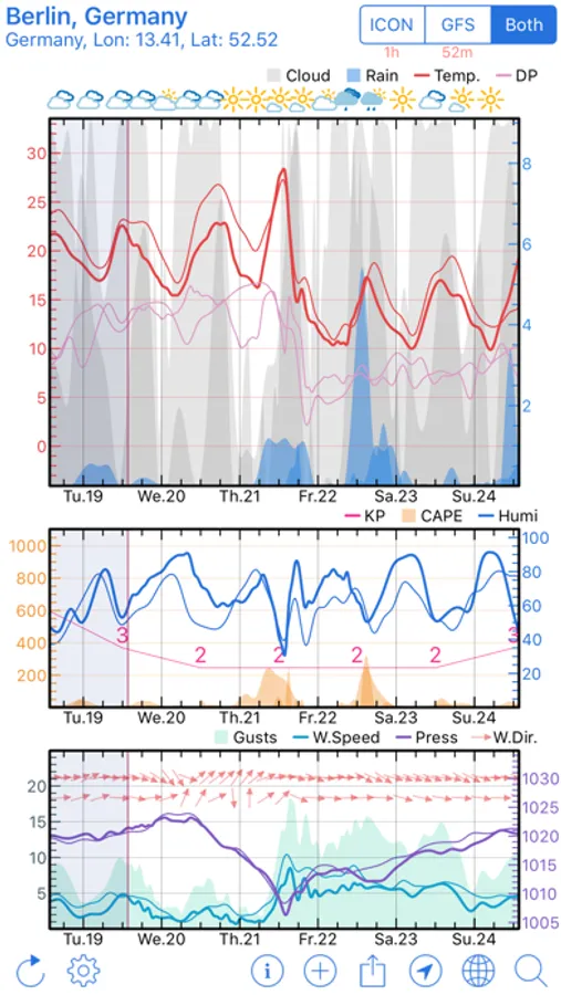 - data from two weather forecast models (DWD ICON and NOOA GFS)