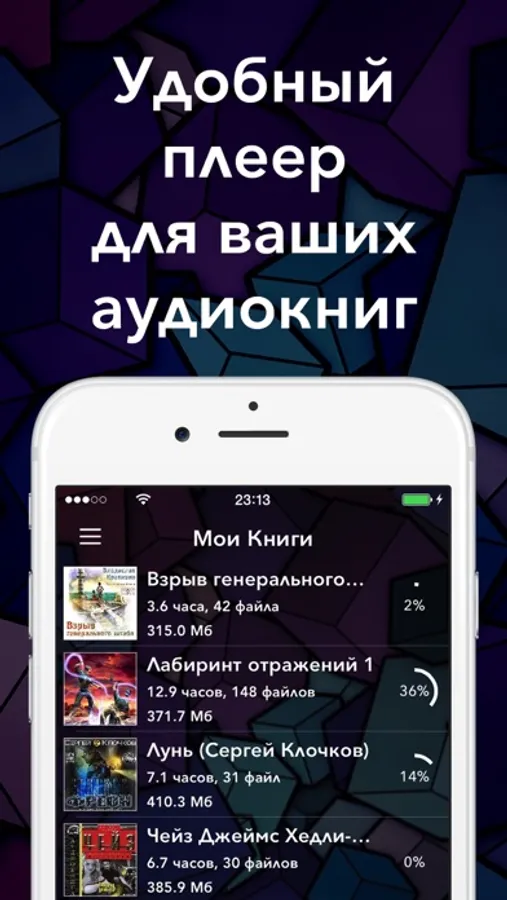 Слушайте любимые аудиокниги в формате mp3 или m4b без конвертирования абсолютно бесплатно и совсем без рекламы. Вам понравится удобное управление и красивый дизайн. Добавлять книги можно через компьютер или облачные сервисы (такие как iCloud, Google Drive и другие). Никаких ограничений и платных функций. Просто пользуйтесь бесплатно навсегда.