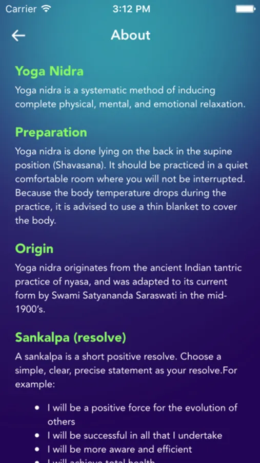 Relax, rejuvenate and meditate with Yoga Nidra. Select from 5 meditation lengths and 3 beautiful video backgrounds.