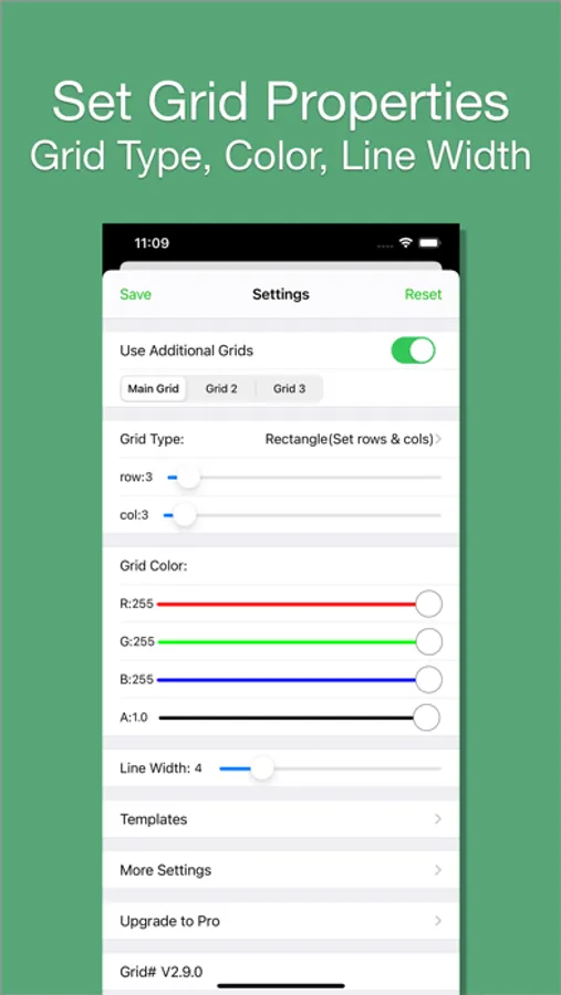 - b. Movable Grid[pro feature]: Grid can be move, or be rotated (Move two fingers around each other to rotate the grid)