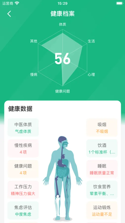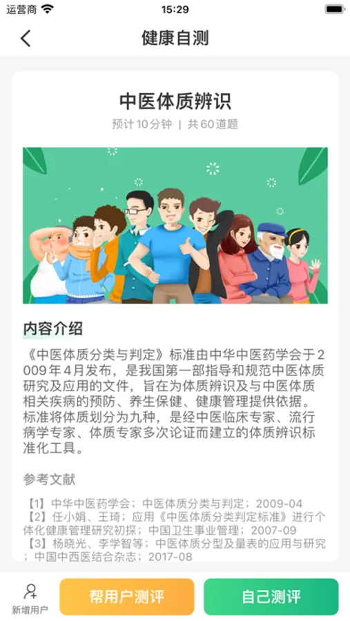 【健康自测】帮助用户细致得了解自身健康问题。对用户的中医体质类型与生活习惯进行分析,评估其健康问题,提供更加完善的健康指导。