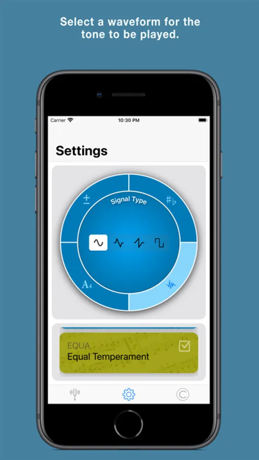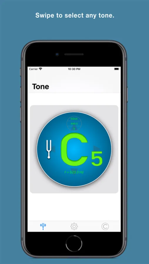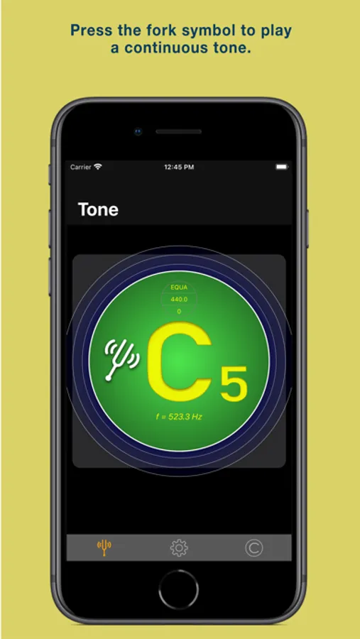 The operation is simple, just swipe your finger to select a tone and press the fork symbol and instantly you will hear a continuous tone sounding.