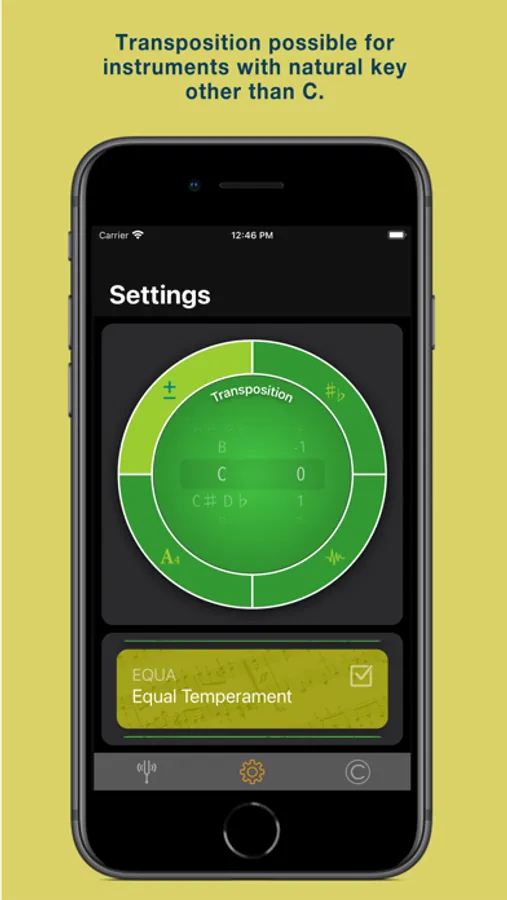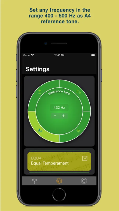 • Adjustable reference tone A4 in the range 400 - 480 Hz