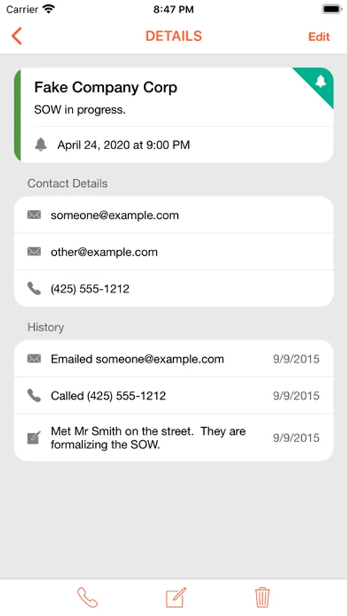 Networker makes you a better freelancer, a better salesperson, or a better entrepreneur. Networker shows your leads, their current statuses, the history of interactions with each lead and contact details. It will remind you when it is time to follow up with a lead -- all while syncing to iCloud.
