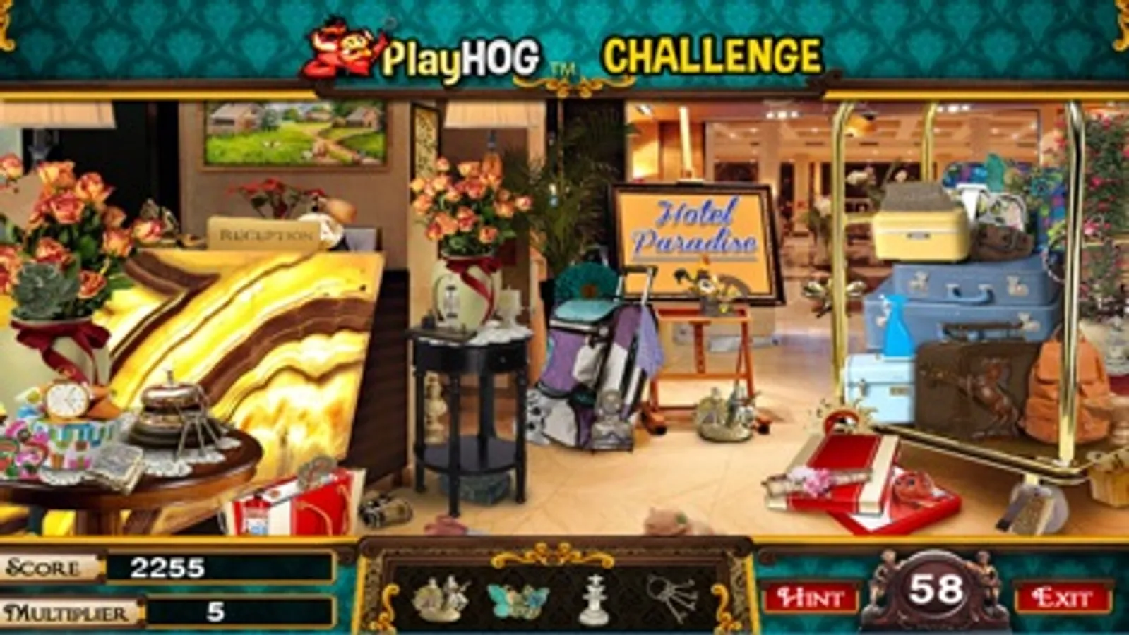 PlayHOG presents Hotel Paradise, one of our newer hidden objects games where you are tasked to find 5 hidden objects in 60 secs. Your score is tied with a multiplier that increases as you find the right hidden objects, but beware, make a mistake and it will reset to 1. Try to get the highest score as you try to find all 400 hidden objects in Hotel Paradise.