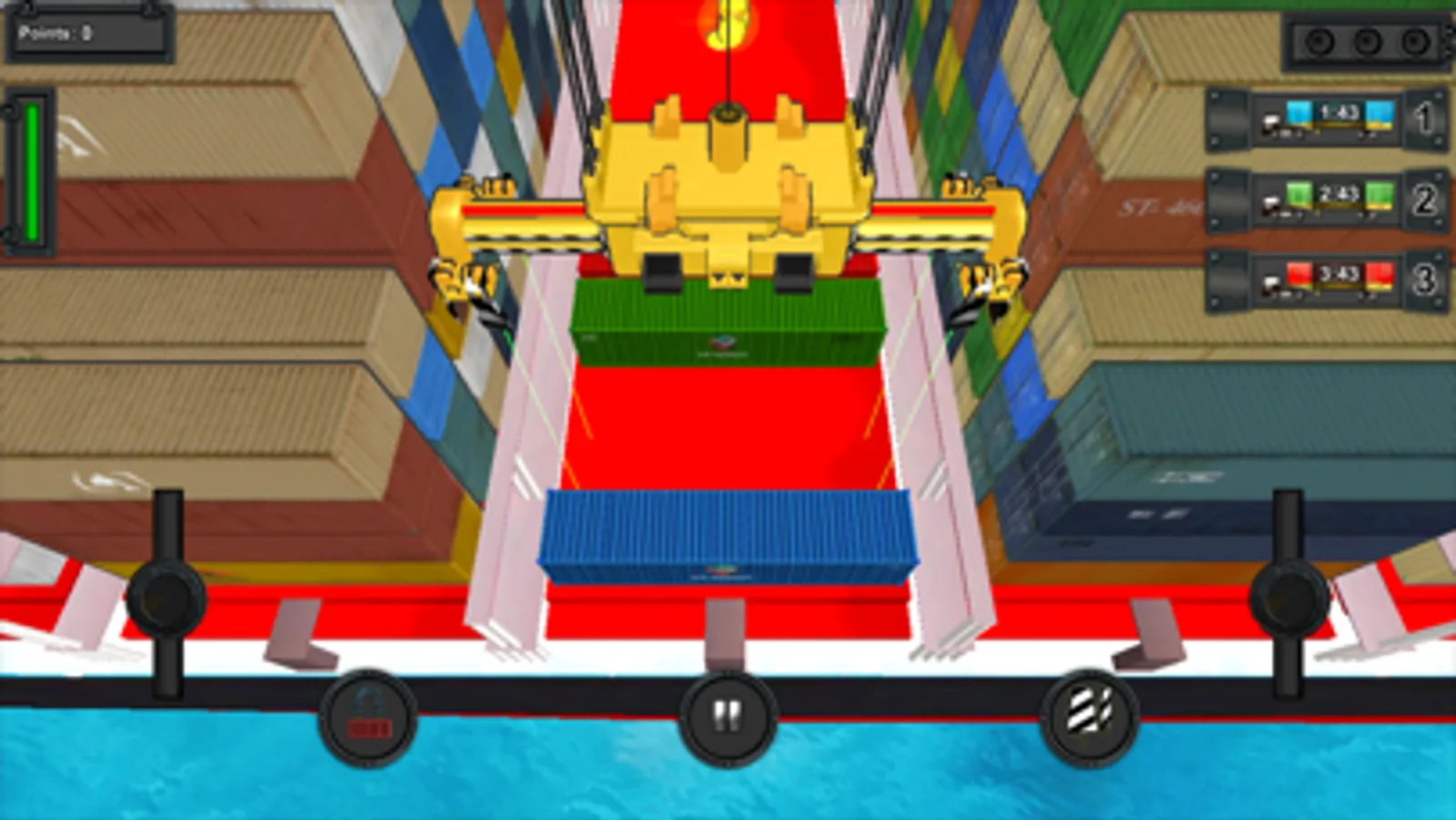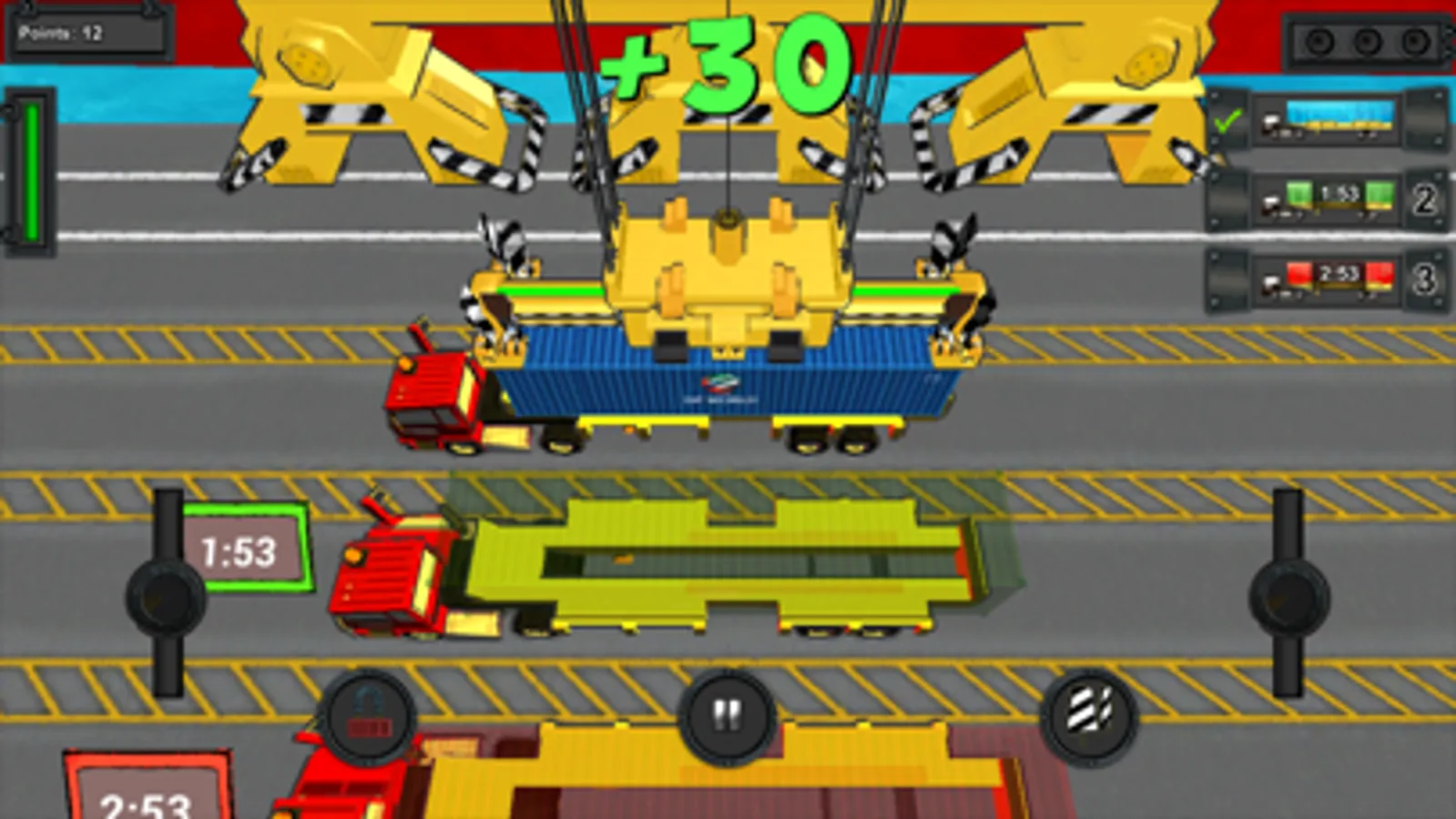 After a short tutorial to learn the controls, you will advance through 12 increasingly difficult levels. The ship is docked; the trucks are waiting; and it’s your job to offload the containers quickly, correctly, and – most important of all – safely.