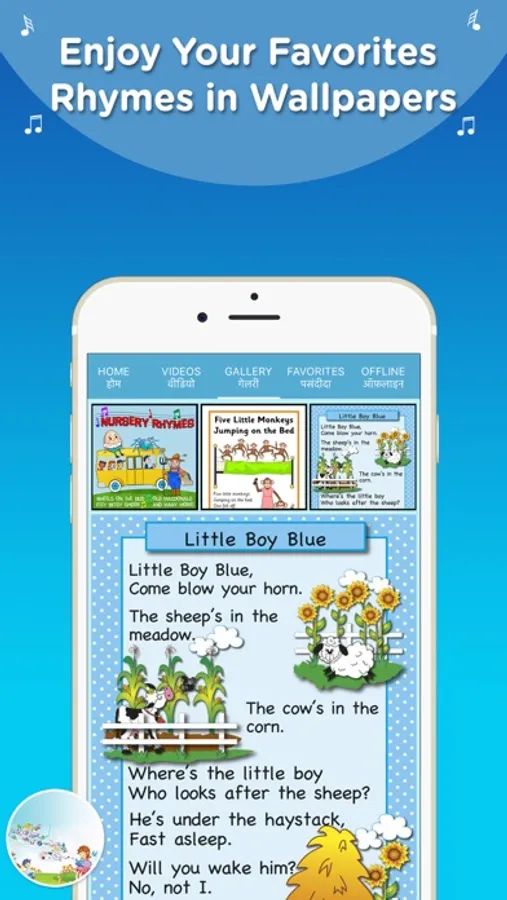 Nursery Rhymes App is the best companion for your toddler. Being the guardian of your kid, the app helps you find delightful, charming, interesting कविता for your little ones. Kids just love the app as they can Read and Sing along their favorite nursery rhymes. It is a smartphone application that helps to listen and learn famous playgroup songs with appealing background screens. The app is intended to give children an interesting and interactive experience; it can make them busy for a while when they are annoying. It is a perfect place to learn basic concepts such as numbers, colors and more.