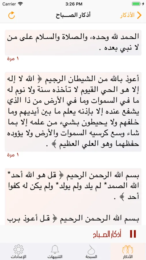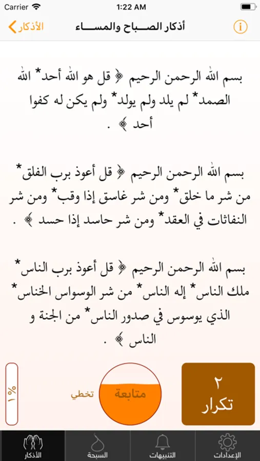 ١. عرض الأذكار مع إمكانية قرائتها بصورة ميسرة و سهلة.