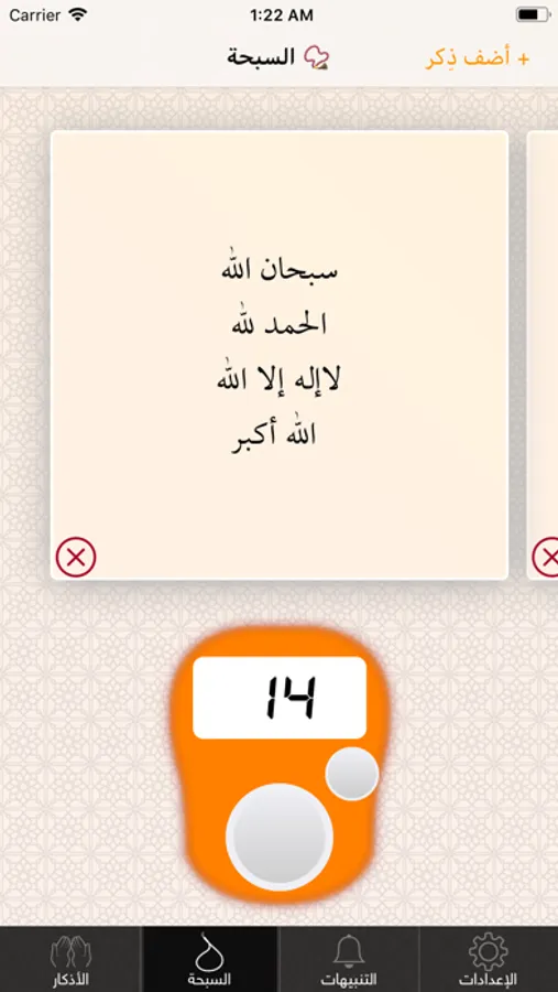 ٢. السبحة و إمكانية إضافة أي ذكر خاص.