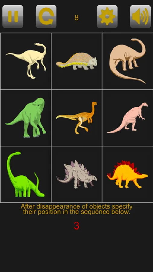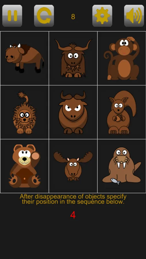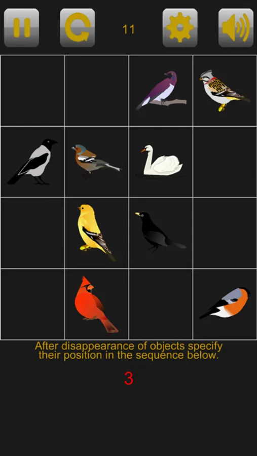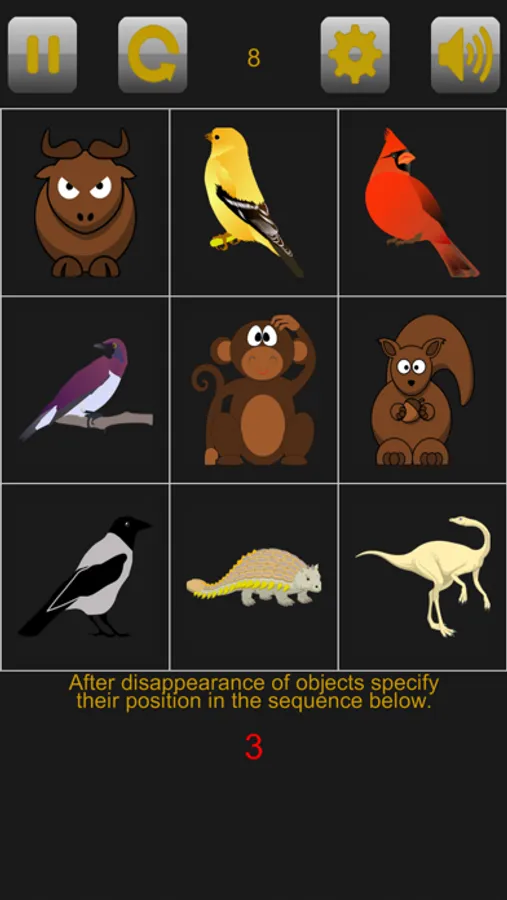 After the disappearance you must specify the location of objects in the order shown on the bottom of the screen.