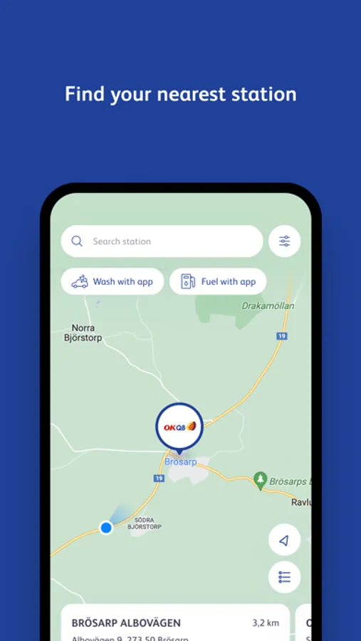 Say hello to a more convenient way to fuel and wash at our stations. Connect your Visa, Mastercard or OKQ8 Private/Business card, and you're all set to start.