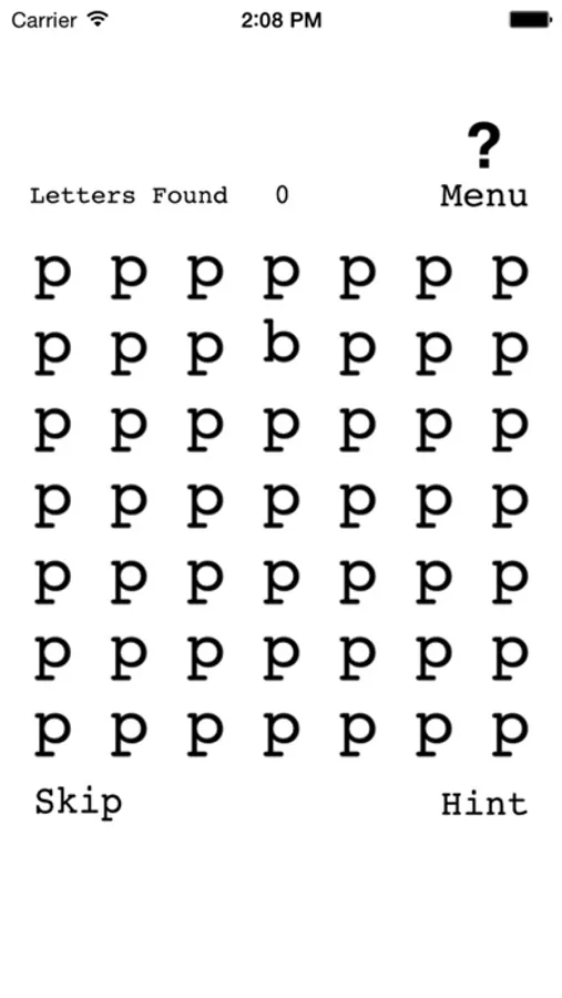 Find the character which differs from the others and tap on it! Find as many letters as possible.
