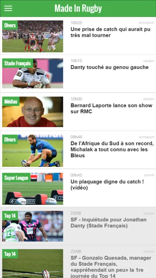 Made in Rugby, votre source d'info rugby, vous offre l'opportunité de suivre toute l'actualité du ballon ovale en direct. Interviews, Résultats et Classements, votre nouvelle application rugby vous permet de suivre toute l'actu des clubs de l'élite française, du championnat anglais, irlandais ou encore des clubs de l'hémisphère sud.