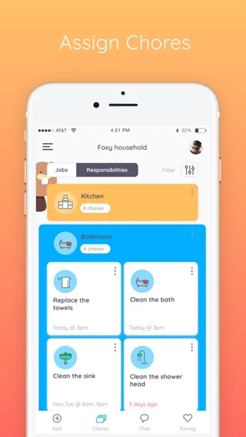 - set daily, weekly or monthly recurring or one time chores for the whole family