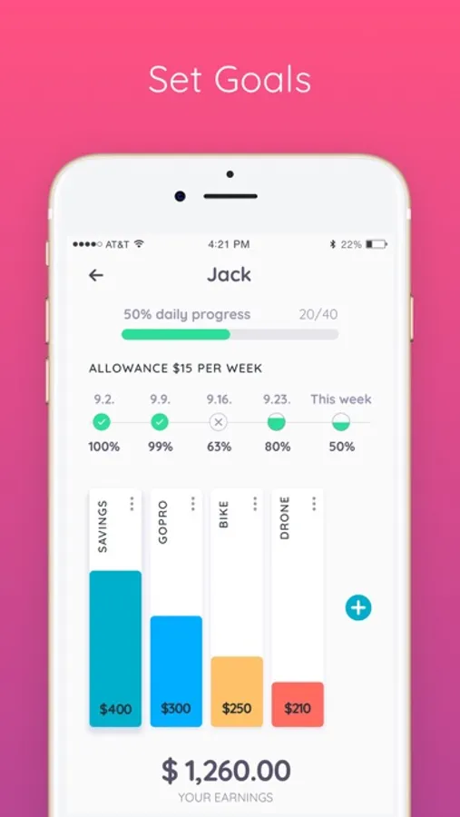 The perfect app to teach your kids about money through completing chores and working towards goals.