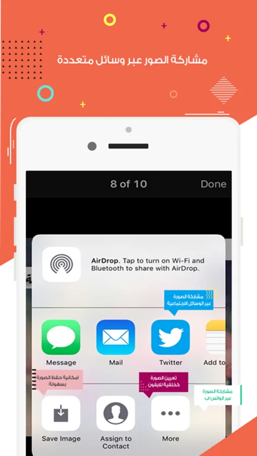 - امكانية مشاركة الصور عبر الوسائل الاجتماعية