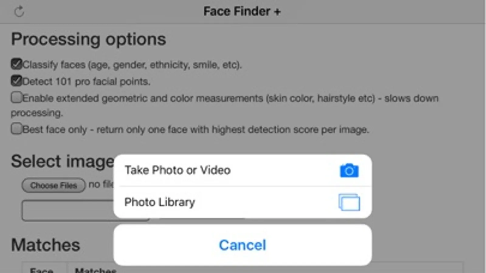 Face Finder + is a facial recognition suite that embraces whole range of complex operations from fundamental face detection through face recognition (identification, verification or 1:1, 1:N matching) to biometric measurements, face analysis, face and facial features tracking to age, gender, ethnicity and emotion recognition. This App is Unique. Complexity and robustness of its technology combined with unrivaled quality of the results and unbeatable performance.