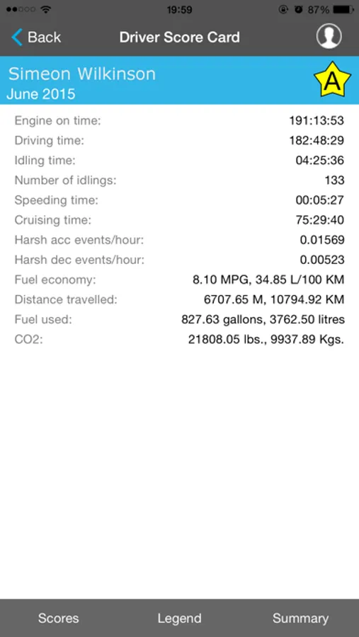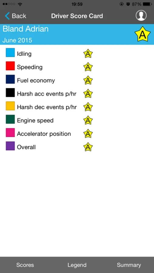 The Driver Performance App works in tandem with Mandata Tracking and Mandata Driver Behaviour to produce accurate, up-to-date scorecards for drivers. Analysing key metrics such as average speed, idling time and accelerator position, drivers can see their latest results, so they can make improvements to their driving style.