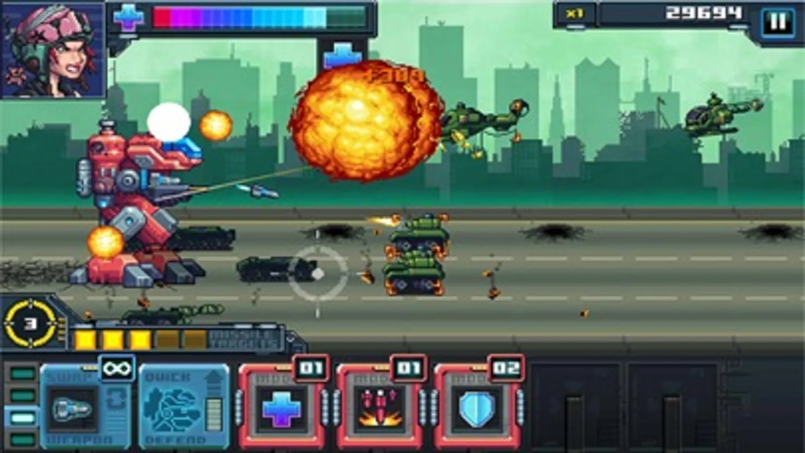 This is a one-woman mech powered assault on an entire military force. Guns, bombs, rocket launchers, tanks, paras, choppers, big bosses - General G.I will throw everything at you including the kitchen sink!