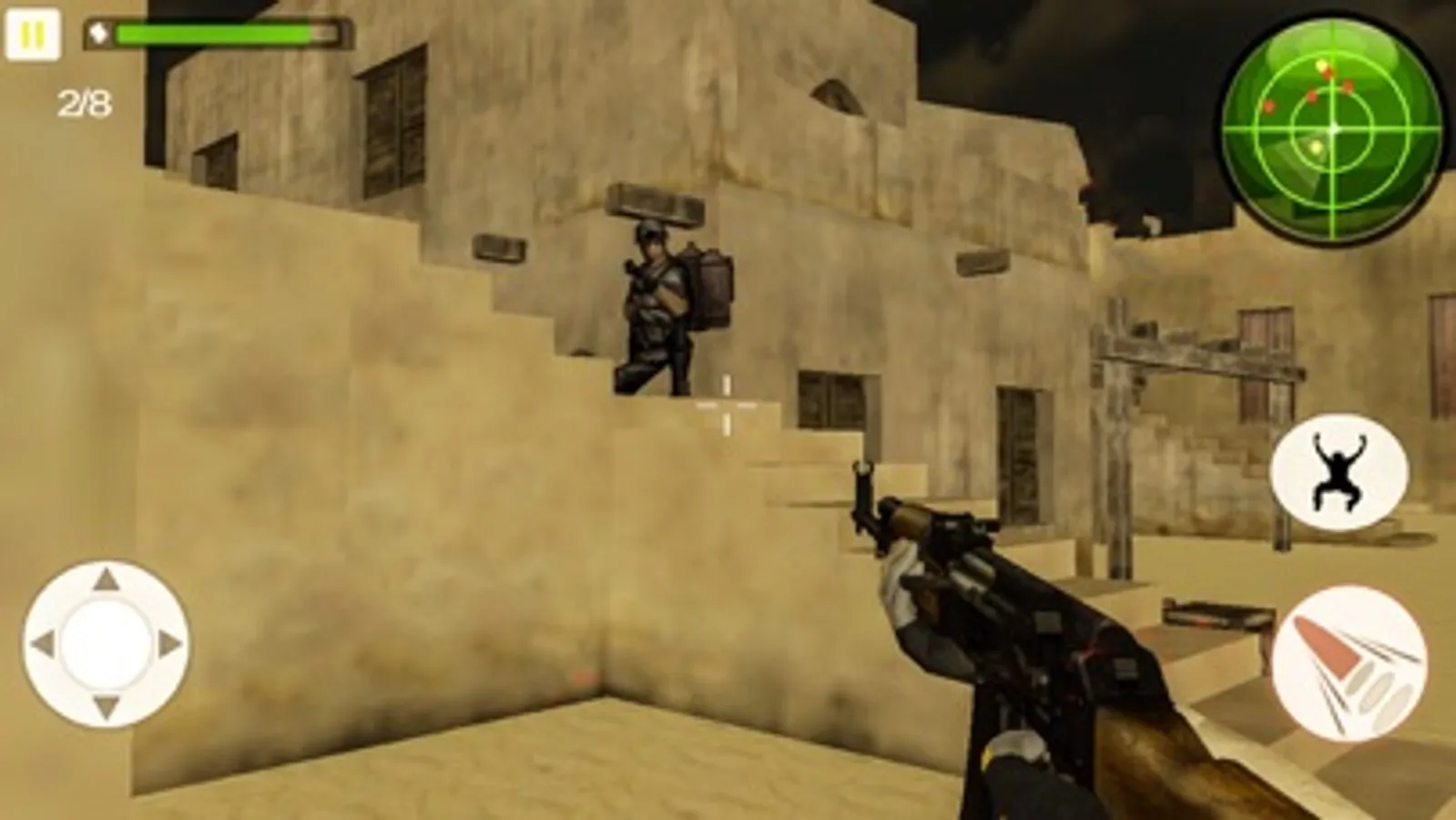 Its time to take action and to do good for the people. Enter the fight against terrorism in the first person shooting game with the real environment. Gear up and fight for peace and prosperity. With beautiful graphics, easy controls and smooth gameplay experience the great first person shooting game with multiple levels.