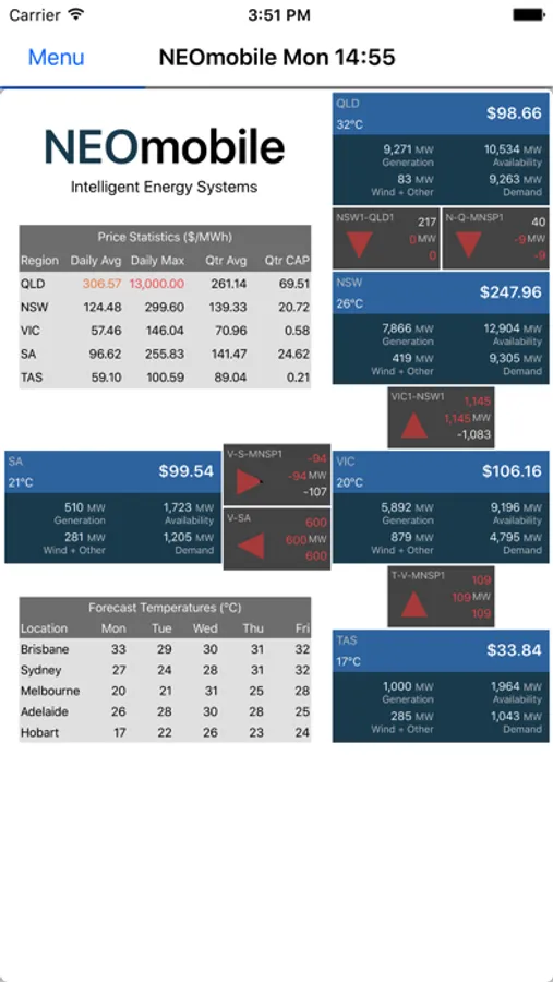 Fast real-time updates: You will be the first to know with NEOmobile. All data is real time and refreshed within seconds as soon as data is available, so you'll know immediately what's going on in the energy market, wherever you are.