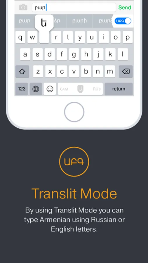 - In transliteration mode you can type in Armenian language using English or Russian keyboards