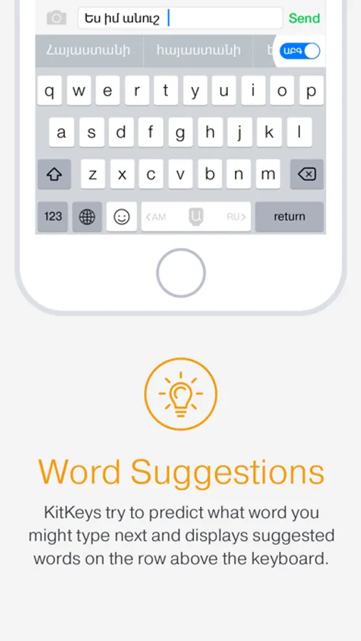 Kitkeys Armenian Keyboard comes fully loaded with multilanguage layout, translit mode, word suggestions, embedded emojis plus more.