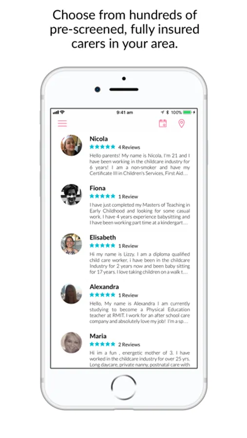 Review your top matches, call or chat through the app and choose a babysitter or nanny that best meets your needs. Have peace of mind knowing all your babysitter and nanny matches are pre-screened, trusted by other parents and reliable.