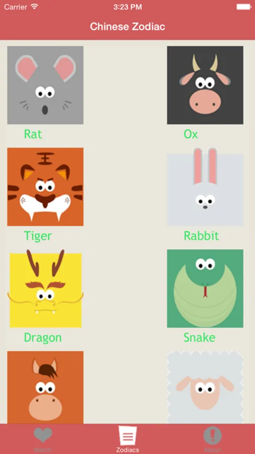 The Chinese animal zodiac is a repeating cycle of 12 years, with each year being represented by an animal and its reputed attributes. Chinese people believe everyone belongs to a zodiac attribute. One can find many similarities with his zodiac sign. Traditionally these zodiac animals were used to date the years. But now most people are using zodiac for luck prediction and love match.