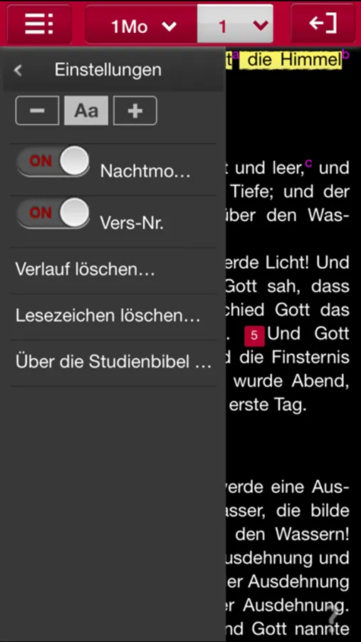 - die Bibel im Hoch- oder Querformat lesen und von Kapitel zu Kapitel zu navigieren