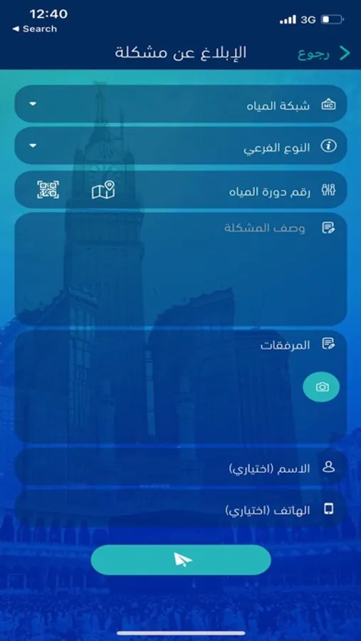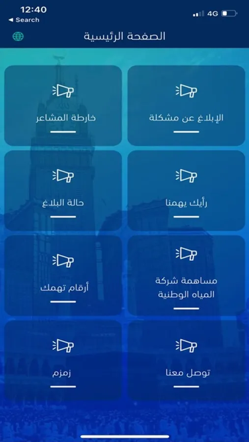 - الابلاغ عن مشكلة : يمكن للمستخدم رفع شكوى حول أعطال أو إشكال في المشاعر المقدسة.