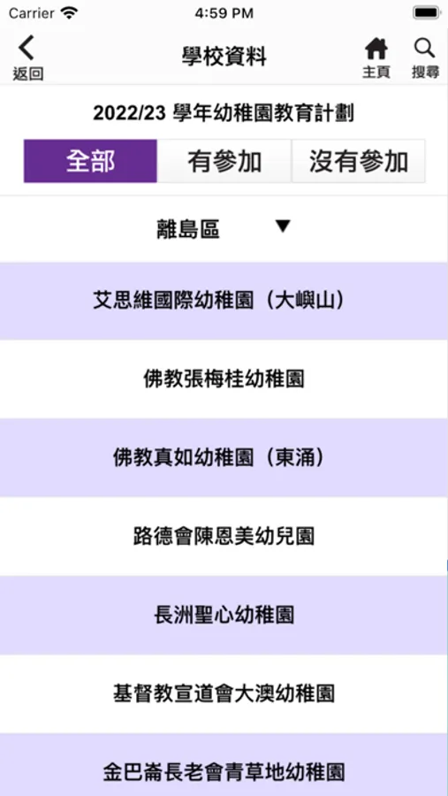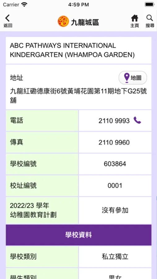 「幼稚園及幼稚園暨幼兒中心概覽2022年」(幼稚園概覽)流動應用程式,臚列了已在教育局註冊並於2022/23學年營辦的幼稚園及幼稚園暨幼兒中心的資料,讓家長為子女選擇幼稚園時能掌握更多相關資訊。幼稚園概覽流動應用程式內載有由教育局備存的學校資料,包括學校名稱、地址、電話號碼、傳真號碼、學生類別、學校容額、非牟利 / 私立獨立性質、核准收費(學費、報名費和註冊費)、學生人數、教師人數和有關學歷、師生比例,及是否兼有開辦為3歲以下兒童提供的幼兒服務等。概覽亦載有由學校提供的資料,包括校監及校長姓名、創校年份、學校網址、學校設施、課程資料、學校特色、教育用品的收費、入學申請資料、校長及教學人員每月薪酬幅度、教學年資及資源分配等資料。沒有參加幼稚園教育計劃(計劃)的學校可選擇性地提供有關資料。 © 教育局 版權所有