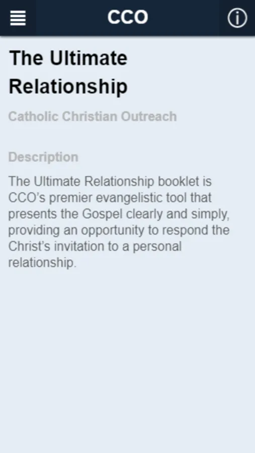 This app features the Ultimate Relationship booklet, which presents the Gospel clearly and simply with an opportunity to respond to Christ’s invitation to a personal relationship.
