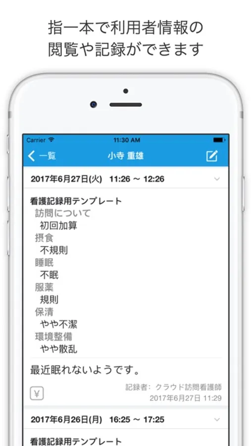 入力をサポートするためのテンプレート機能もあり、基本的な内容であれば、テンプレート内容を選択していくだけで記録を作成できます。