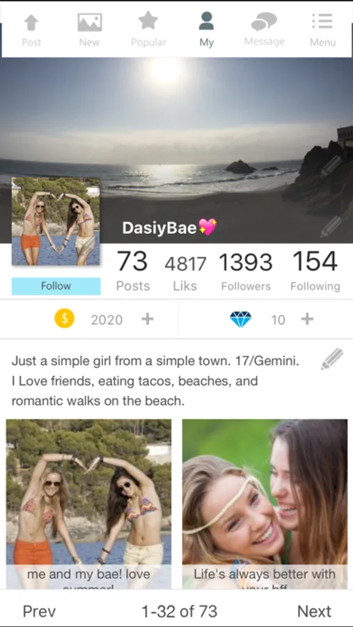 * Buy GEMS so you can pin yours or your friends posts to help become popular