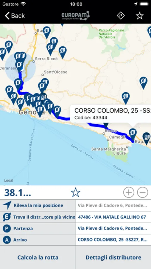 Inoltre con la funzione 'calcola la rotta', l'applicazione Europam diventa un vero e proprio navigatore che ti consente di individuare i punti vendita convenzionati in base al tragitto che intendi percorrere!