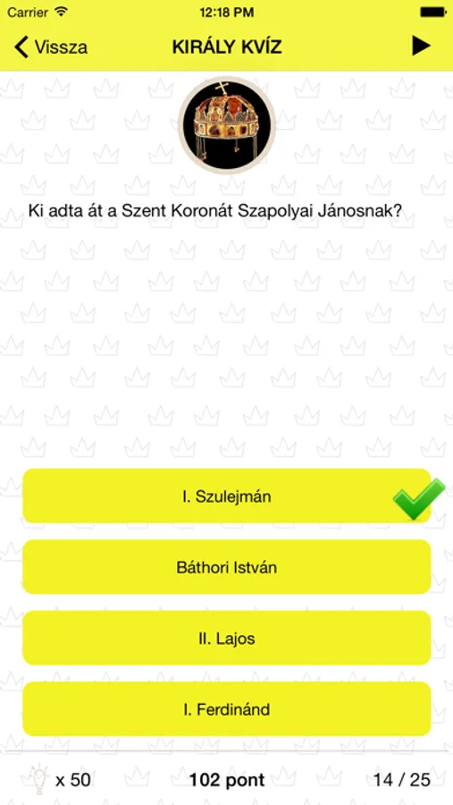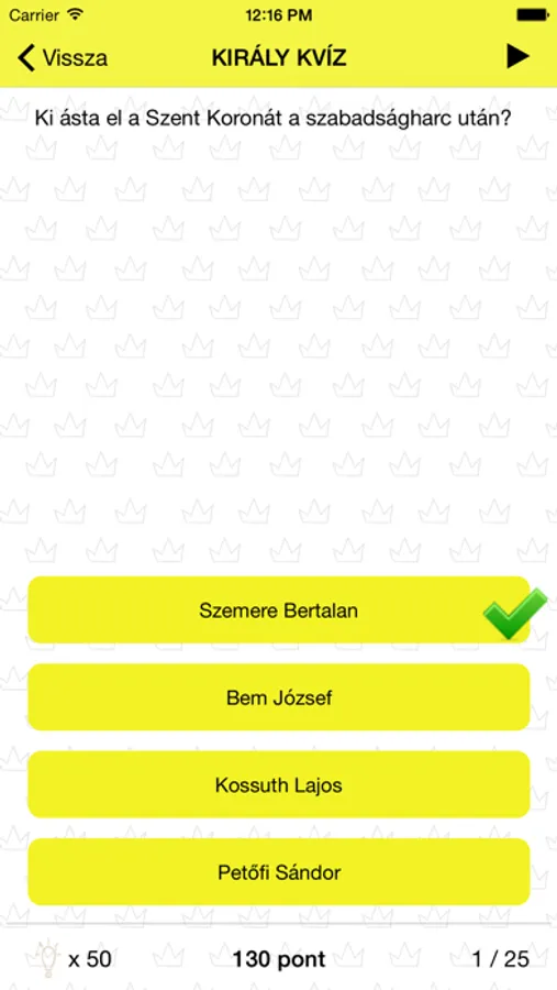 Tipp: Lehetőség van tippet kérni - ekkor megmutatja a játék a jó válasz (és az első tippnél még pontot is kapsz!:) )