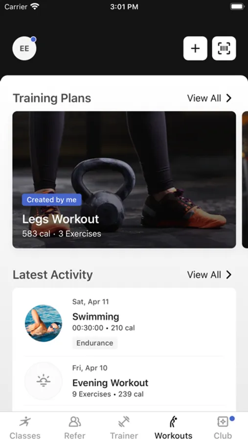 - Entry of workout data in and out of the facility, either automatically with a wearable, or manually entered.