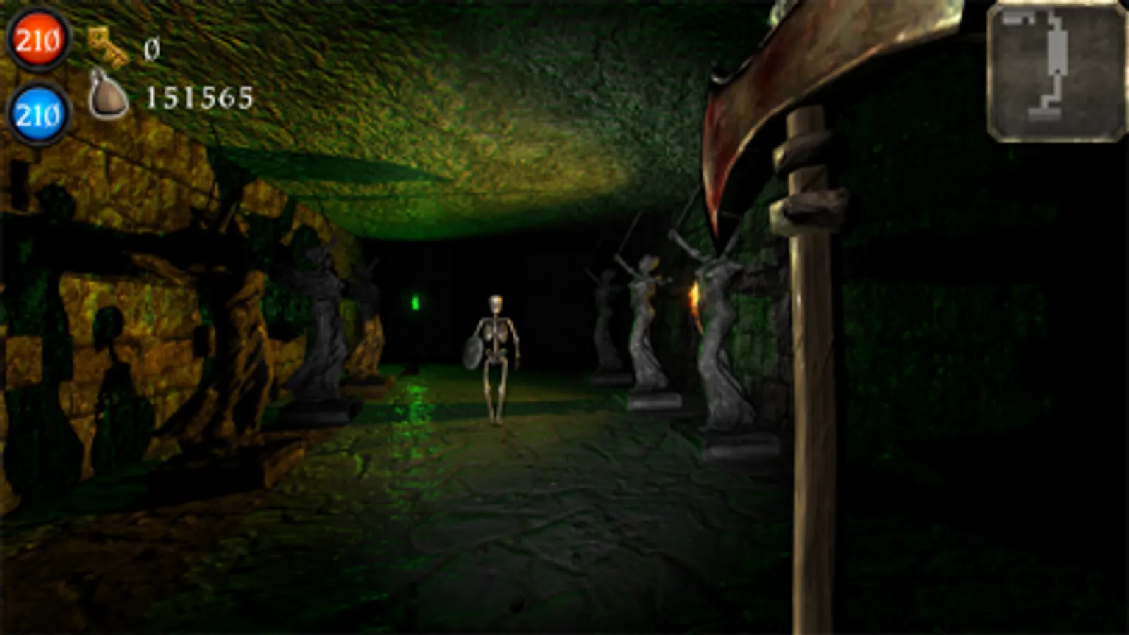 - Gather loot from dead enemies or barrels and replenish health and mana with potions.