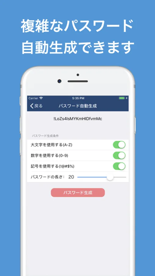 自由に設定することによりパスワードを生成することが可能です。