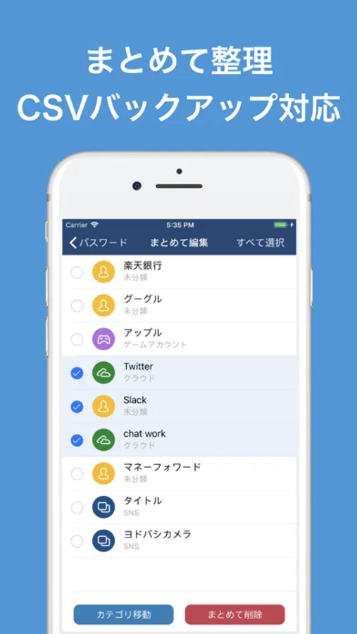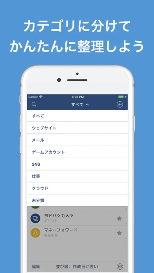 ・アイコンのカスタマイズが可能なカテゴリ機能で、簡単にパスワード管理!