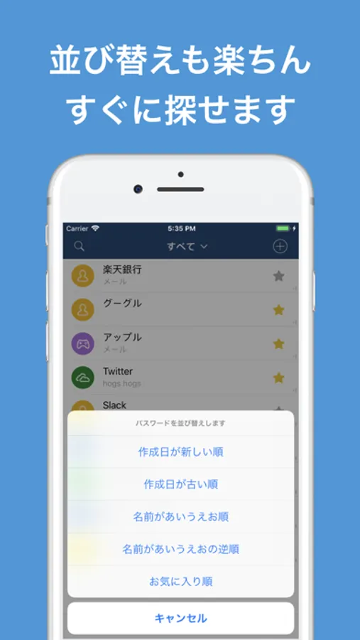 ・パスワード一覧の並び替え機能