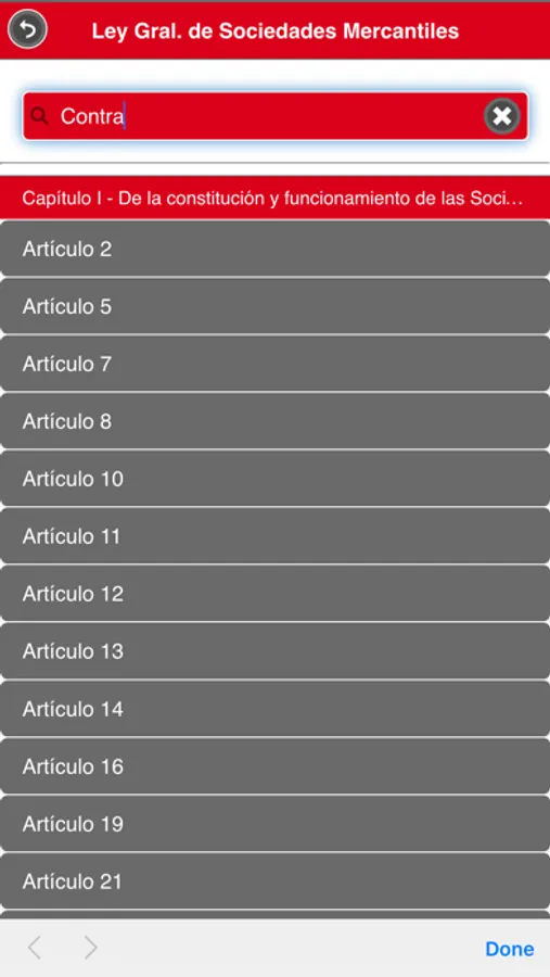 Seleccione el texto legal en el que desee saber el articulo dónde se ubica alguna palabra, concepto o término clave. Una vez escrita la palabra, la aplicación mostrará en qué título y artículo se encuentra la búsqueda para que se remita a esa sección. En la versión Pro, al seleccionar algún artículo arrojado en la búsqueda, éste podrá consultarse de manera completa.