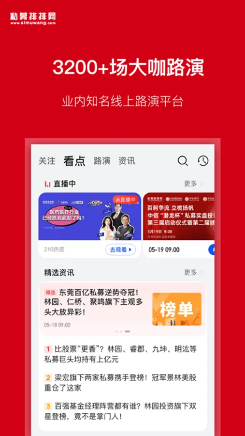 ●【路演直播】每日邀请私募投资大咖现场直播,全面剖析投资策略,想要了解私募走势,实时关注路演直播就没错;