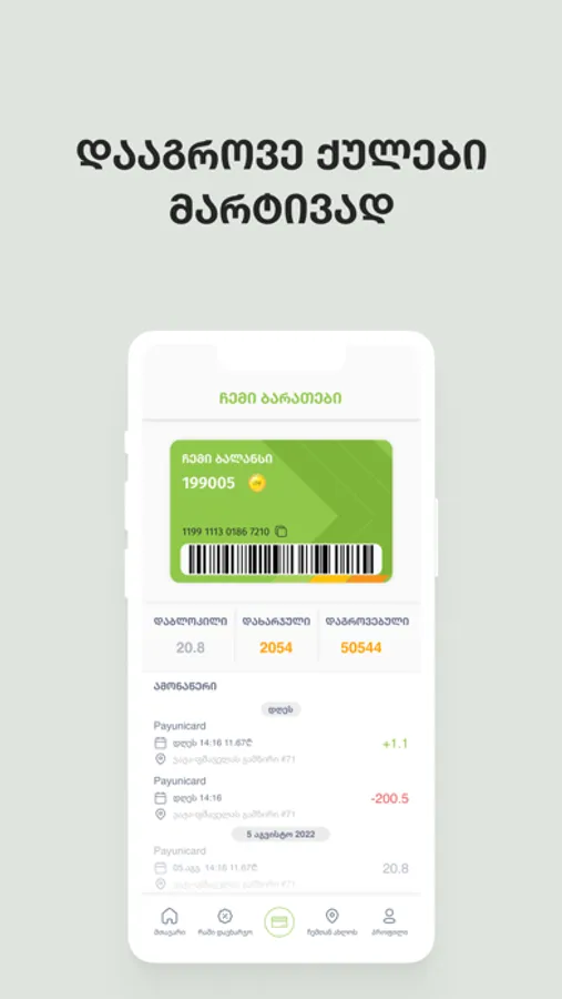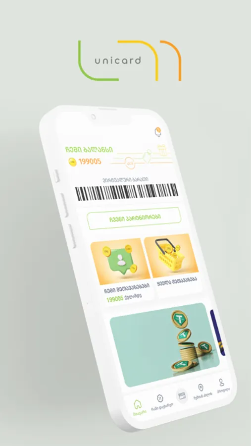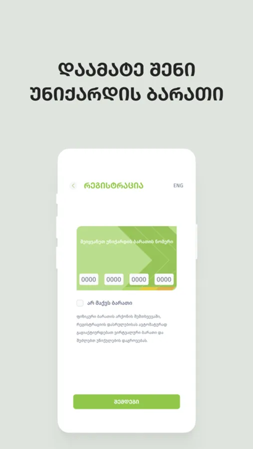 If you are registered at www.unicard.ge, you can log into the app with the same user by entering your e-mail and password.