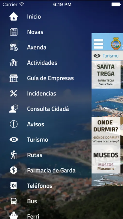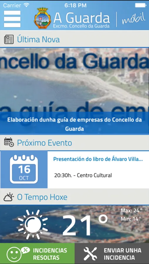 Información sobre noticias locais, axenda cultural e deportiva, guía con mapa e xeolocalizador, teléfonos de interese, actividades, notificacións...