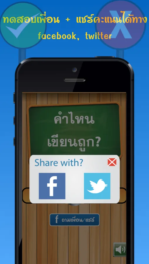 4. สามารถแชร์คะแนนอวดเพื่อน, แข่งขันกันได้ทาง Facebook และ Twitter