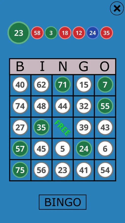 The objective of Bingo is to mark the numbers which are showed on your bingo card as quickly as possible.