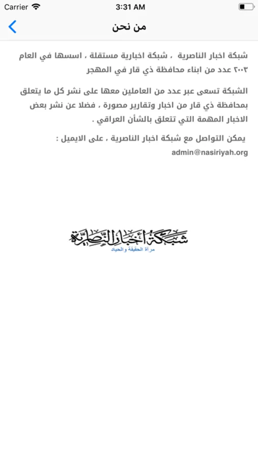 شبكة اخبار الناصرية ، شبكة اخبارية مستقلة ، اسسها في العام ٢٠٠٣ عدد من ابناء محافظة ذي قار في المهجر .الشبكة تسعى عبر عدد من العاملين معها على نشر كل ما يتعلق بمحافظة ذي قار من اخبار وتقارير مصورة ، فضلا عن نشر بعض الاخبار المهمة التي تتعلق بالشأن العراقي . يمكن التواصل مع شبكة اخبار الناصرية ، على الايميل :admin@nasiriyah.org