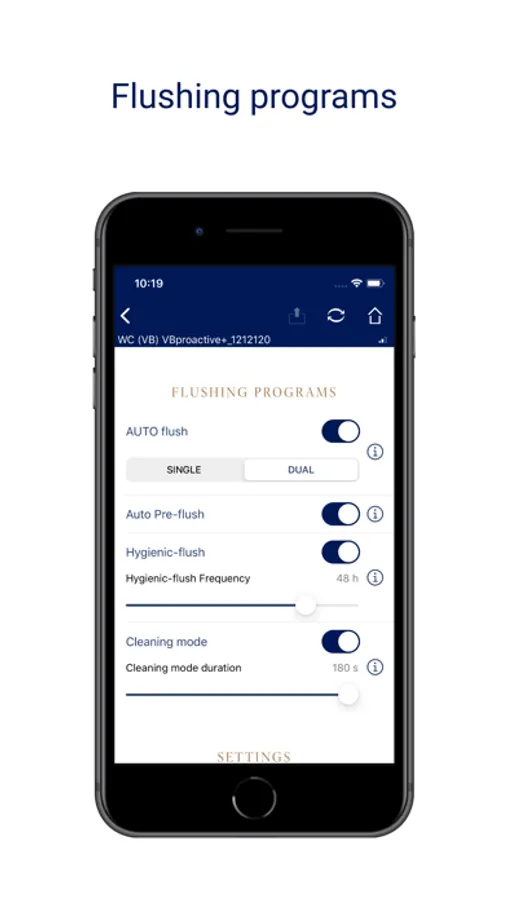 • Flush volume selection via App